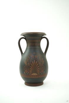 Lot 65 , A rare Wedgwood encaustic decorated black basalt two handled baluster vase, late 18th century