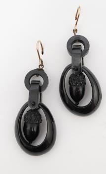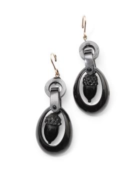Lot 379 , A rare pair of Victorian jet earrings, circa 1870