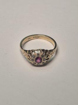Lot 922 , A recent 18ct gold, ruby and diamond set cluster ring, with carved shoulders, size L/M, gross weight 3 grams.