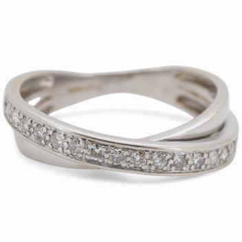 Lot 916 , A recent 18ct white gold and diamond set twin band crossover ring, size L, gross weight 3.5 grams.