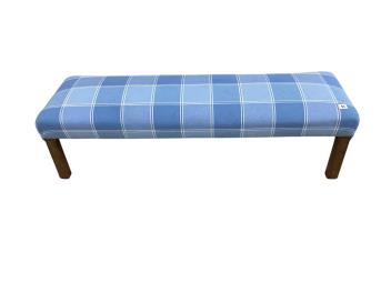 Lot 1053 , A rectangular upholstered fender stool on chamfered mahogany legs, width 124cm, depth 38cm, height 34cm