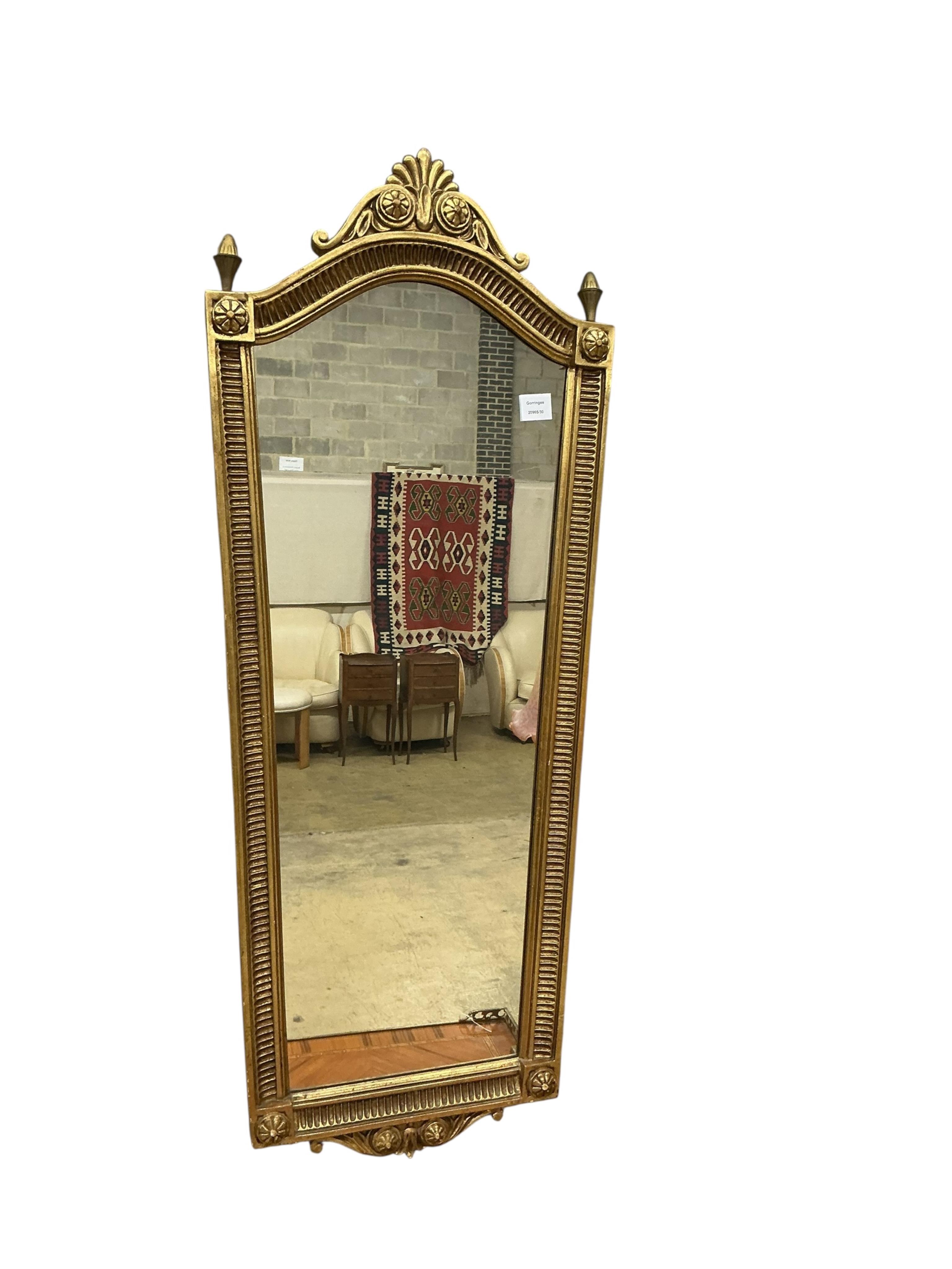 Lot 241 , A reproduction Empire style gilt framed wall mirror, width 49cm, height 122cm