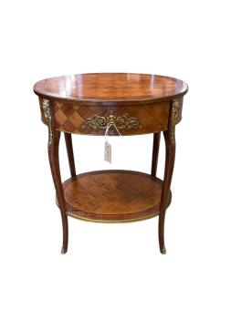 A reproduction French transitional style gilt metal mounted two tier table, width 53cm, depth 41cm, height 67cm