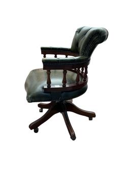 Lot 1103 , A reproduction buttoned green leather beech swivel desk chair, width 61cm, depth 54cm, height 88cm
