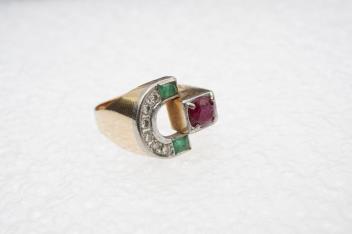 Lot 650 , A ruby, emerald and diamond ring, mid 20th century