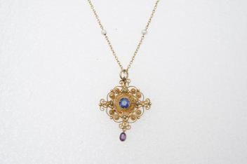 Lot 333 , A sapphire, amethyst and pearl pendant necklace, late 19th century