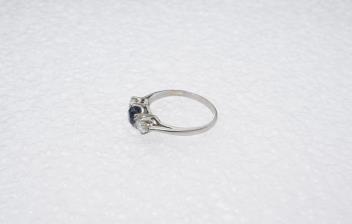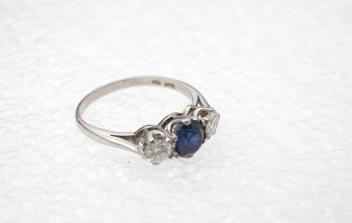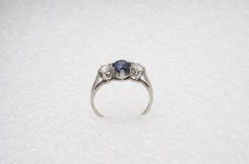 Nice ring in good condition, only minor wear, sapphire a deep blue, measuring approximately 5.8 x 5.0 x 4.6mm.