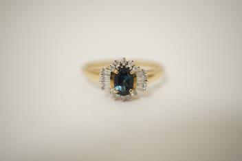 Lot 945 , A sapphire and diamond ring, set with an oval sapphire, bordered by brilliant-cut and tapered baguette diamonds totalling approximately 0.15 carats, mounted in 14ct gold, size O, British hallmarks, gross weight approxima