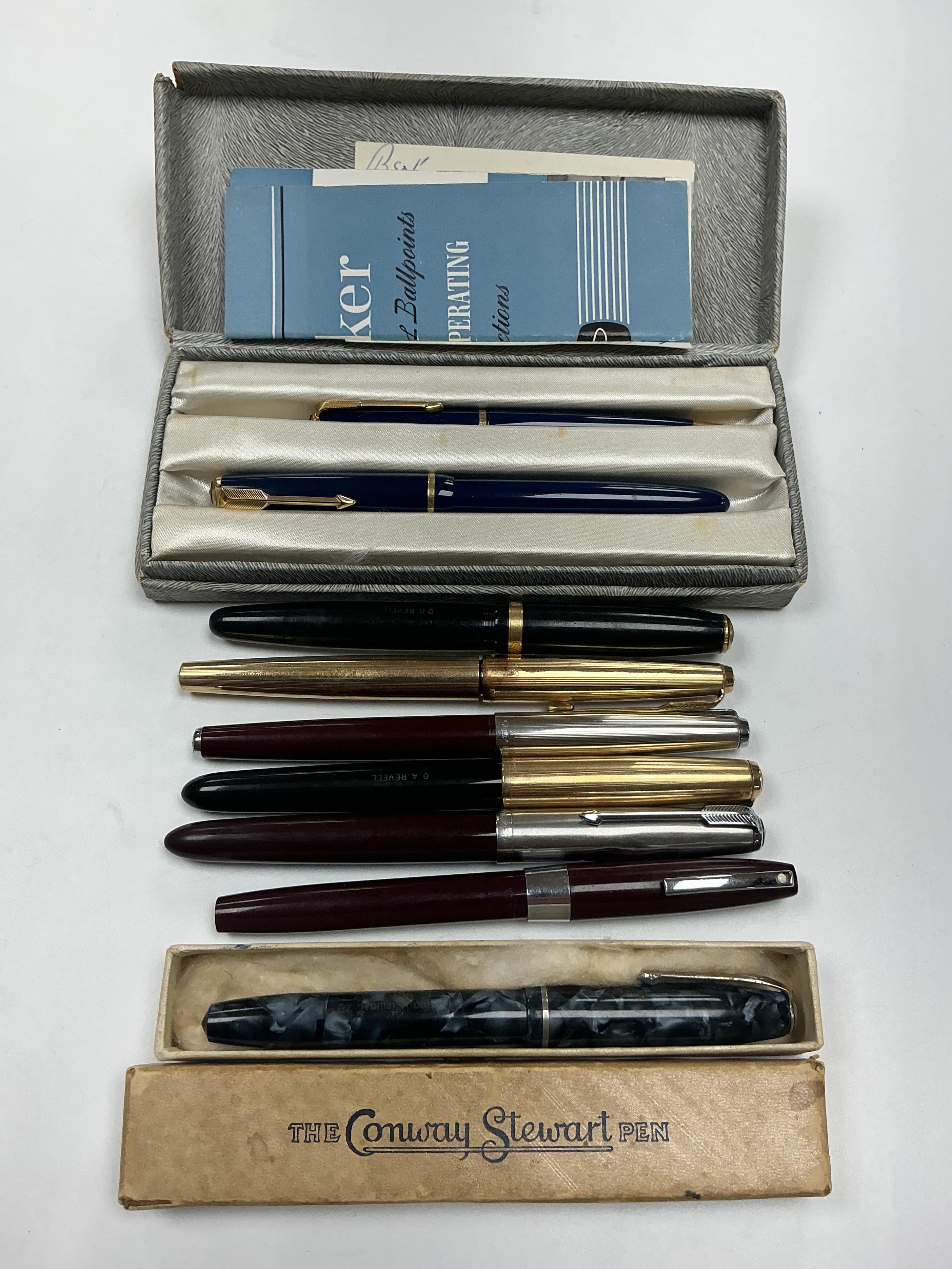Lot 9 , A selection of nine various fountain pens, mainly Parker
