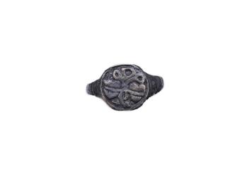 A sentimental signet ring, France, circa 16th century, the circular panel depicting two hearts tied in a true lover's knot, size R1/2, labelled 2244