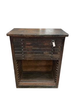 Lot 1300 , A set of 19th century industrial printer's drawers, (lacks ten drawers), width 88cm, depth 47cm, height 106cm