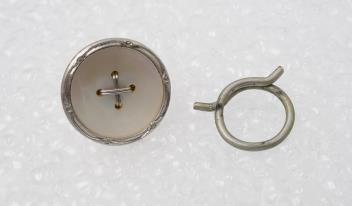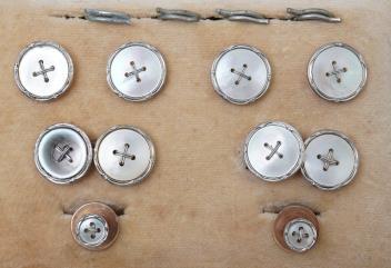 In good condition, some minor wear and discoloration to mother of pearl. Button hoop fittings of base metal.