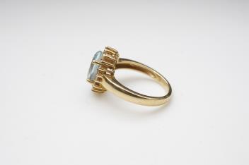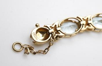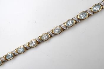 Attractive and in good condition, only minor wear, aquamarines quite pale but well-matched and pretty. Bracelet well-articulated, clasp secure. Ring cluster approximately 13.5mm in total.