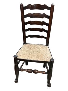 Lot 1054 , A set of eight 19th century Lancashire rush seat ash ladderback chairs, two with arms