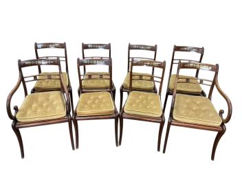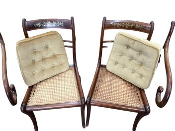 Lot 1072 , A set of eight Regency cut brass inlaid rosewood cane seat dining chairs, two with arms