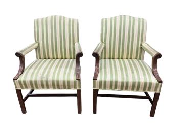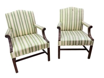Lot 1067 , A set of five reproduction Gainsborough style upholstered mahogany elbow armchairs, width 66cm, depth 58cm, height 96cm
