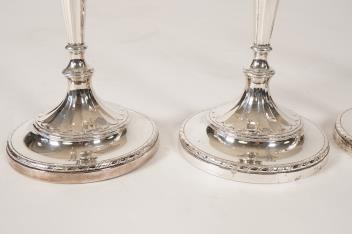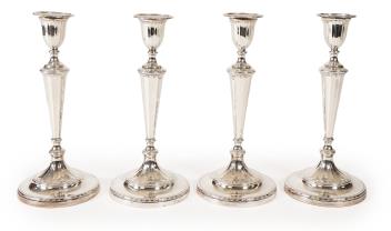 Lot 8 , A set of four George III silver candlesticks, by John Green, Roberts, Mosley & Co