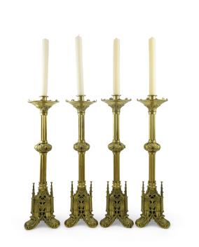 Lot 267 , A set of four Gothic revival brass altar candlesticks