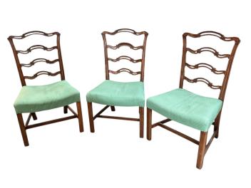Lot 2094 , A set of nine George III mahogany pierced ladderback dining chairs, two with arms