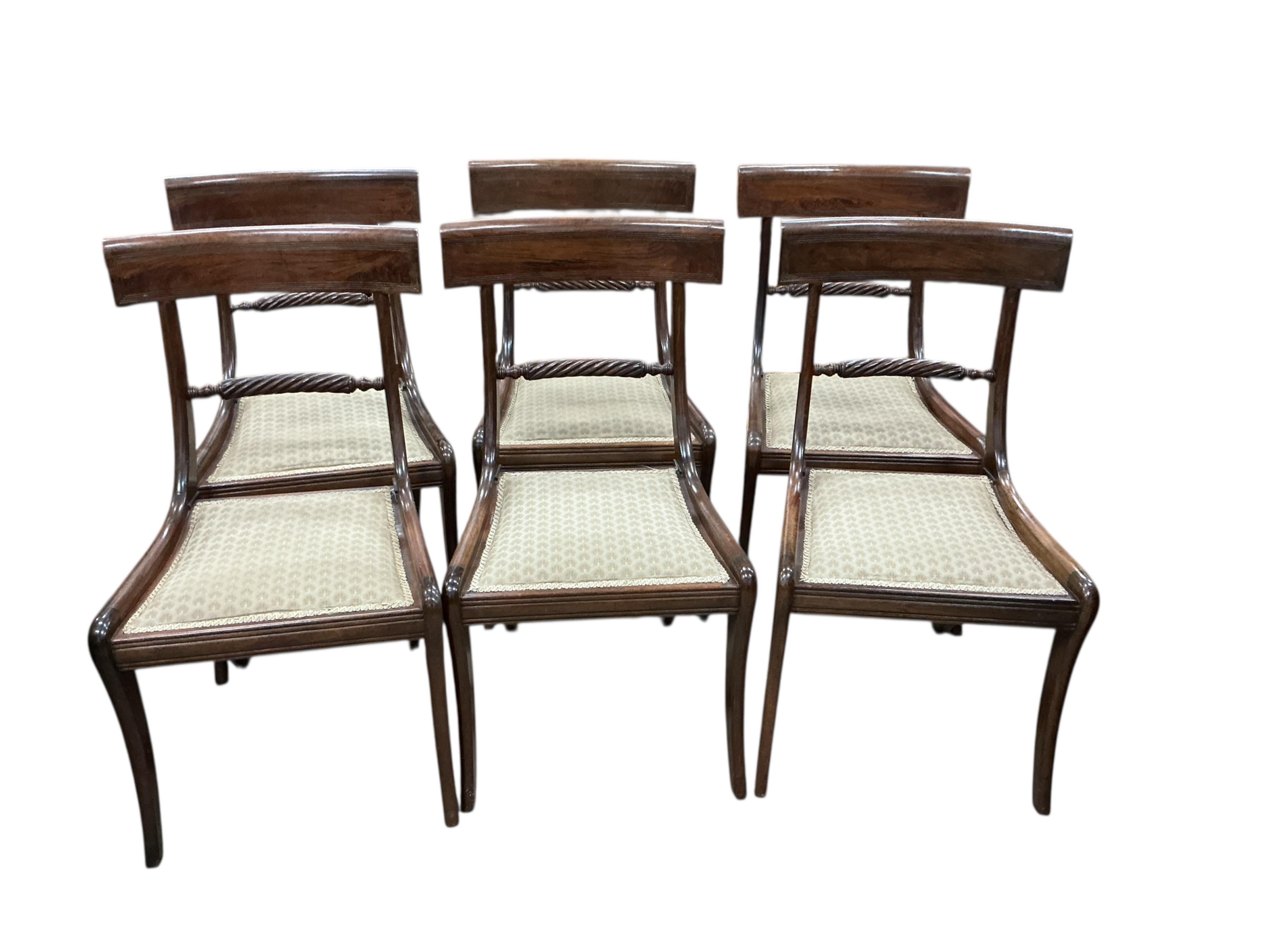 A set of six Regency style rope back dining chairs, width 49cm, depth 55cm, height 87cm