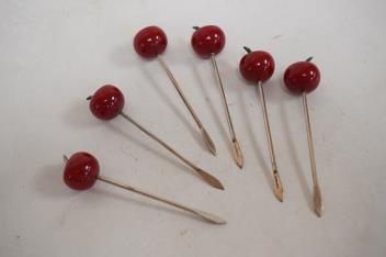 Lot 1003 , A set of six modern sterling cocktail sticks, with 'cherry' terminals, stamped sterling, 69mm, together with an Elizabeth II silver petal dish and spoon, maker CJG, London, 1981.
