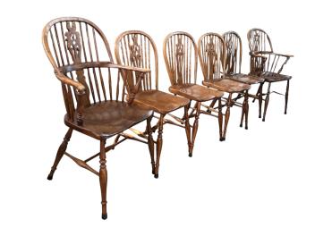 Lot 1024 , A set of six reproduction elm and beech Windsor dining chairs, two with arms, width 59cm, depth 50cm, height 98cm