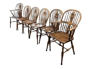 A set of six reproduction elm and beech Windsor dining chairs, two with arms, width 59cm, depth 50cm, height 98cm