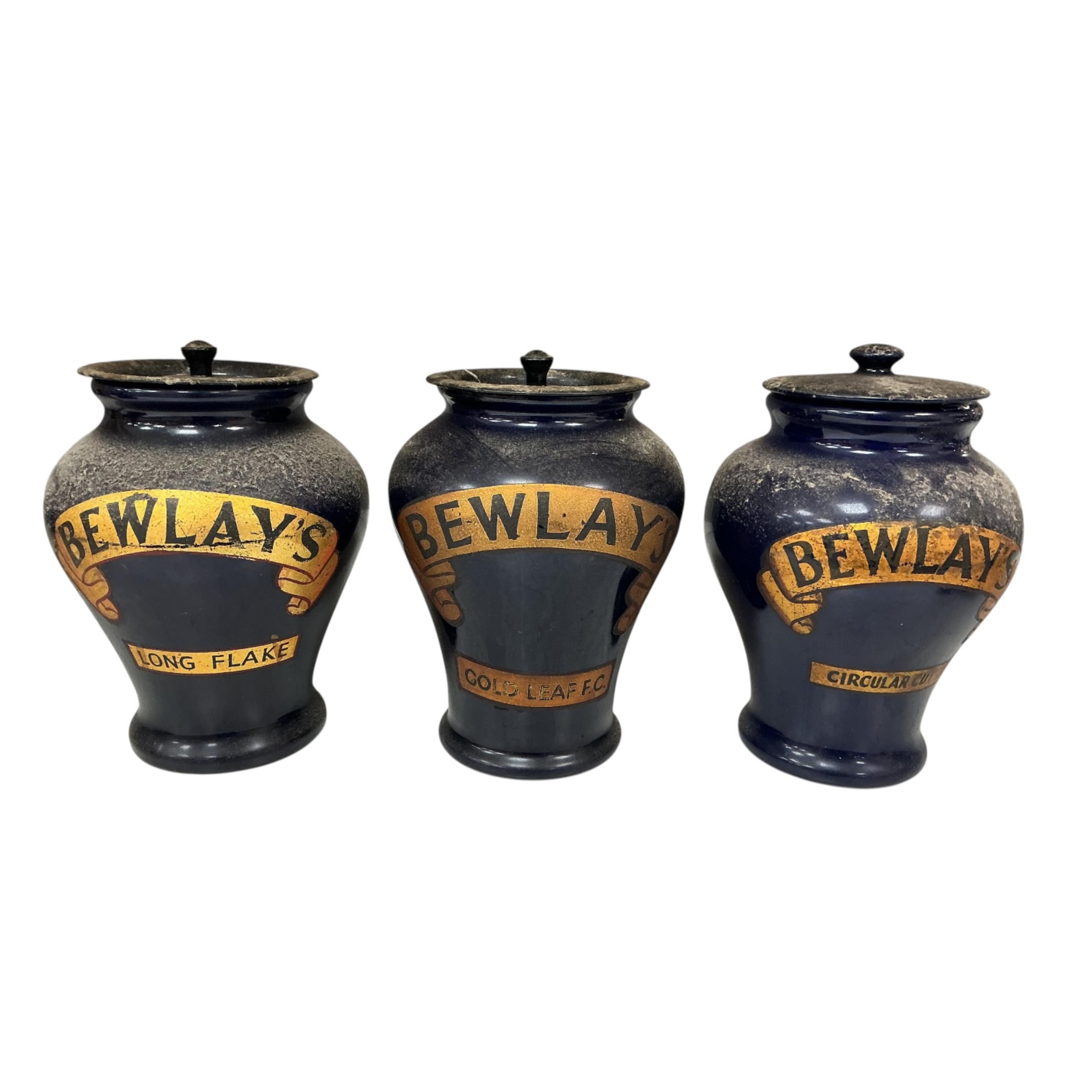 Lot 1290 , A set of three Doulton tobacco jars comprising Long Flake, Gold Leaf and Circular Cut, 23cm high