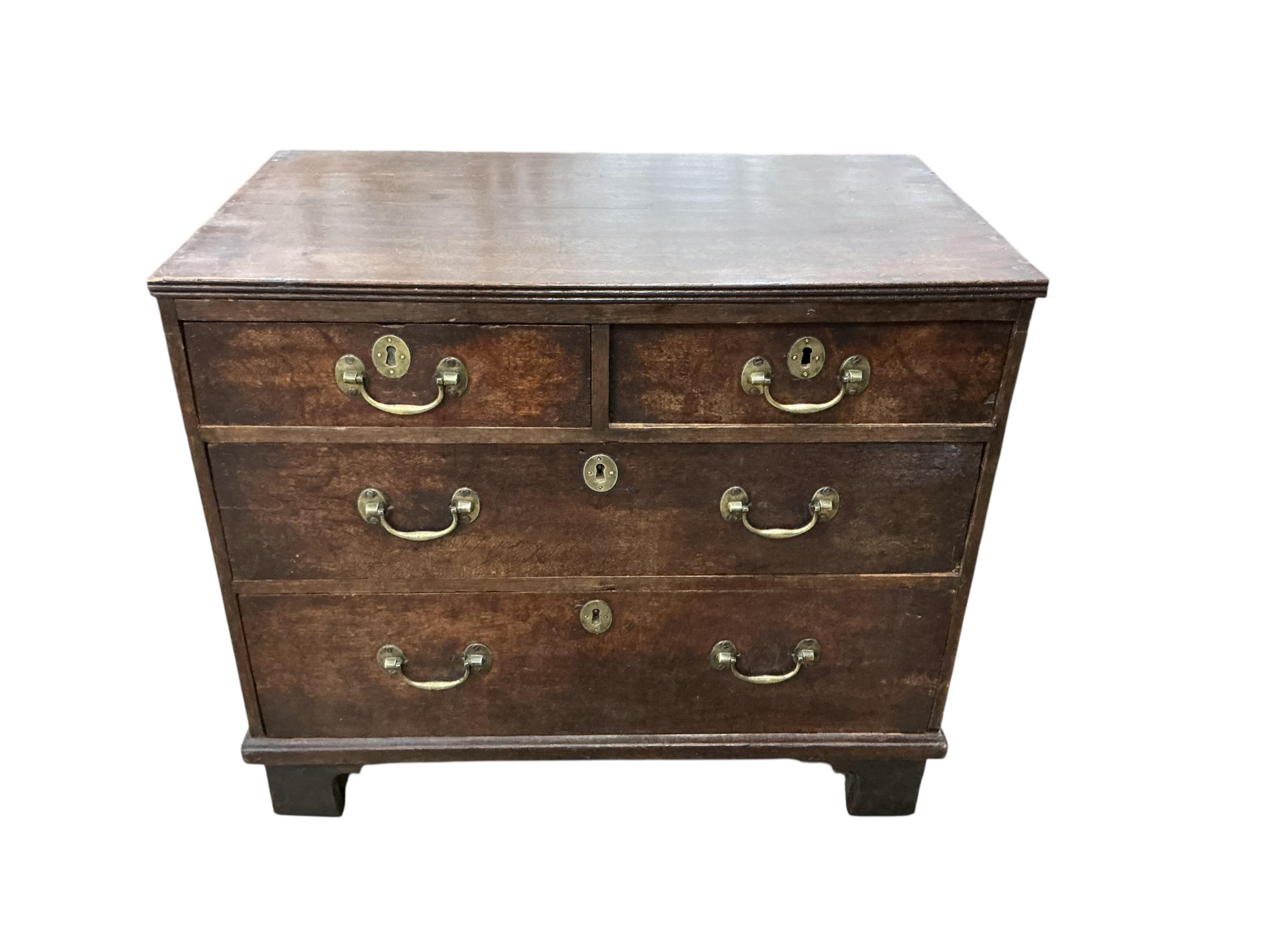 A small 18th century and later oak chest of drawers, width 78cm, depth 44cm, height 67cm