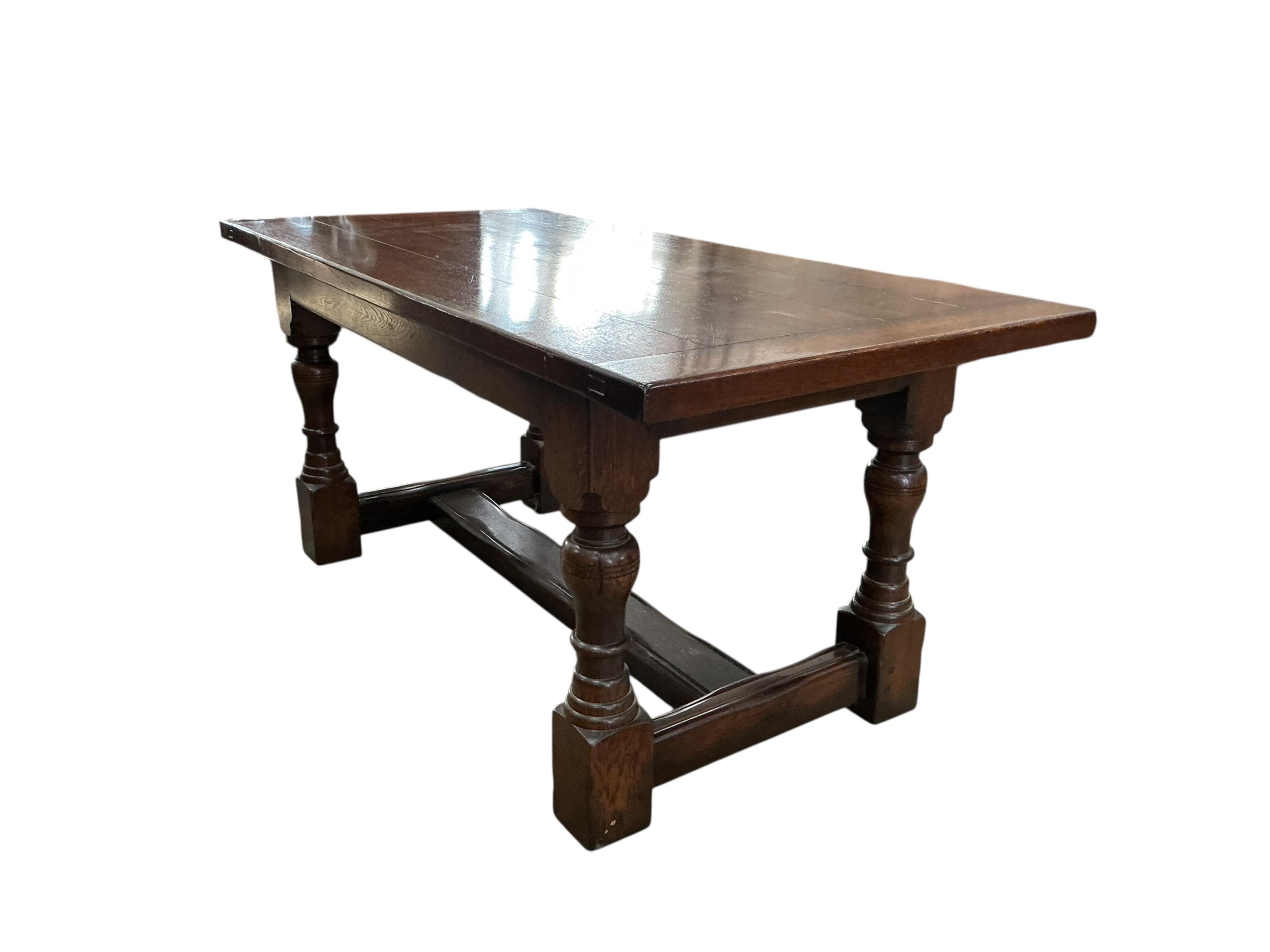 Lot 1023 , A small 18th century style rectangular oak refectory dining table, width 168cm, depth 81cm, height 77cm