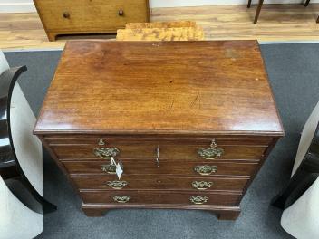 Lot 1067 , A small George III mahogany four drawer chest with brushing slide, width 78cm, depth 46cm, height 79cm