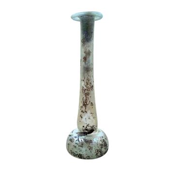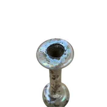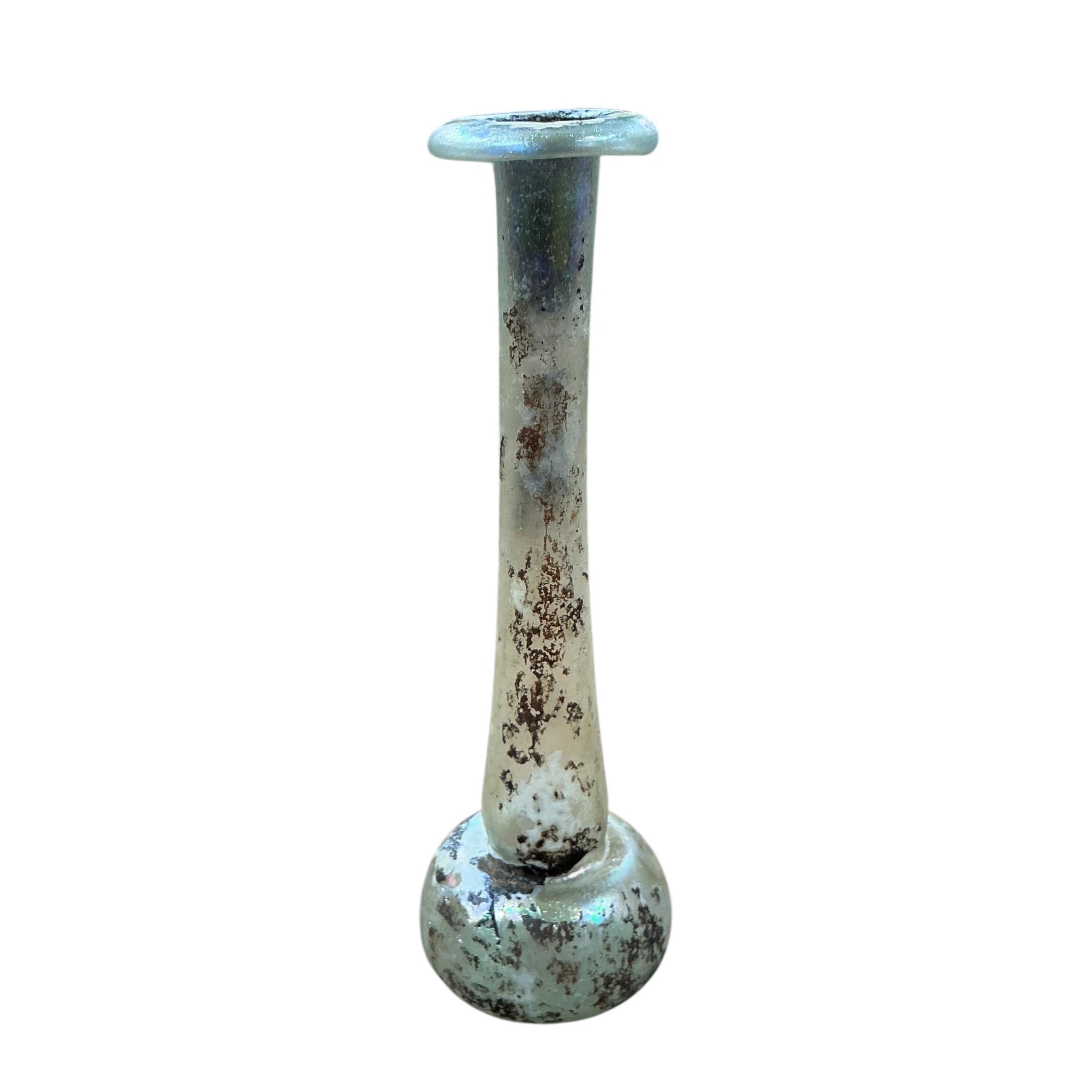A small iridescent glass vase, Romano - Syrian Unguentarium x.3rd C AD, 14cm high