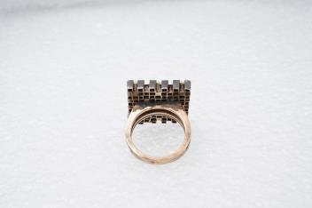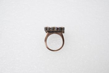 One corner broken. Some wear to synthetic rubies, some traces of solder. Front measuring