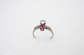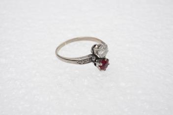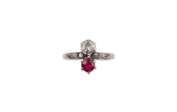 Lot 719 , A synthetic ruby and diamond 'toi-et-moi' ring, early 20th century