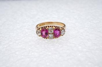 In good condition, diamonds bright and lively, synthetic rubies possibly later replacements - lovely bright colour and looking good in the mount.