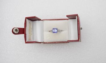 Tanzanite measuring approximately 8.5 x 8.5 x 5.4mm, calculated weight approximately 2.30 carats. Attractive colour, good clarity, in good condition, diamonds bright and lively.