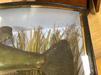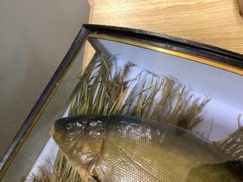 Lot 318 , A taxidermy tench in a glazed bow fronted case, the glass with applied gilt lettering reading; ‘Tench 4lbs 1oz, Caught by F. Hayworth Jolley Anglers. June 19th. 1931.’, 63.5cm wide, 34.5cm high