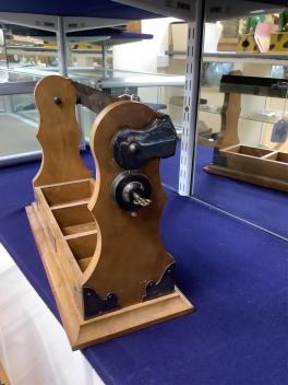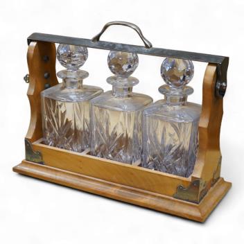 Lot 418 , A walnut three-decanter tantalus, 41cm