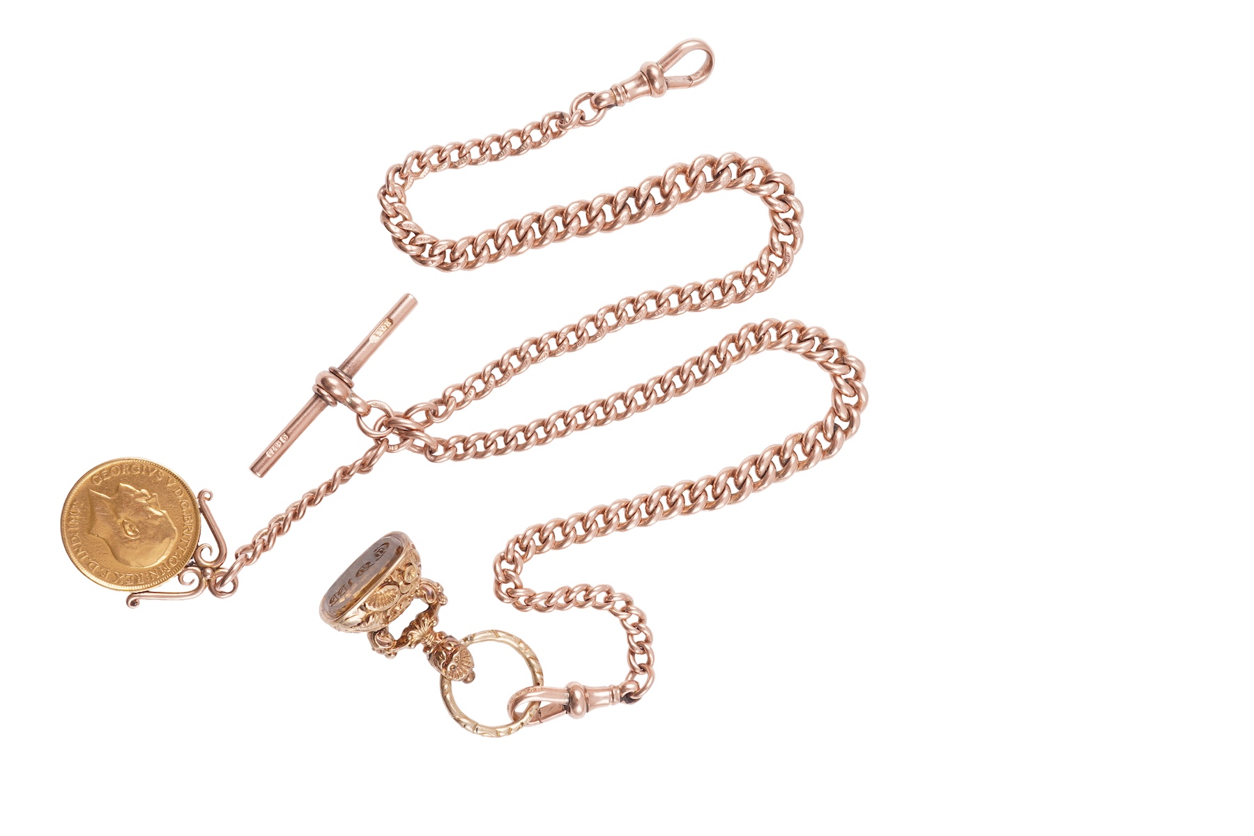 Lot 209 , A watch chain, sovereign and fob pendant, late 19th/early 20th century