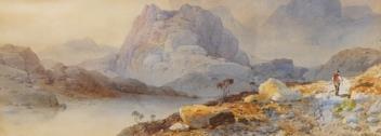 Lot 764 , Aaron Edwin Penley R.A. (1807-1870), Mountainous riverscape with figure, signed, watercolour, 18 x 46cm