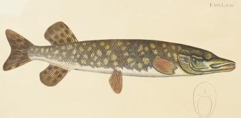 Lot 729 , After Andreas Ludwig Kruger (1743-1822), zoological study of a pike (Esox lucius), colour print, 22 x 39cm