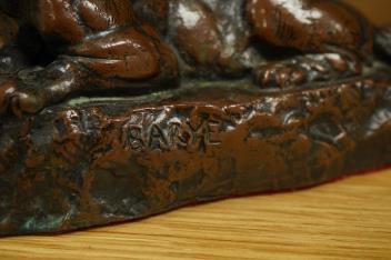 After Antoine-Louis Barye (French, 1796-1875), a small bronze of a lioness, 20cm wide
