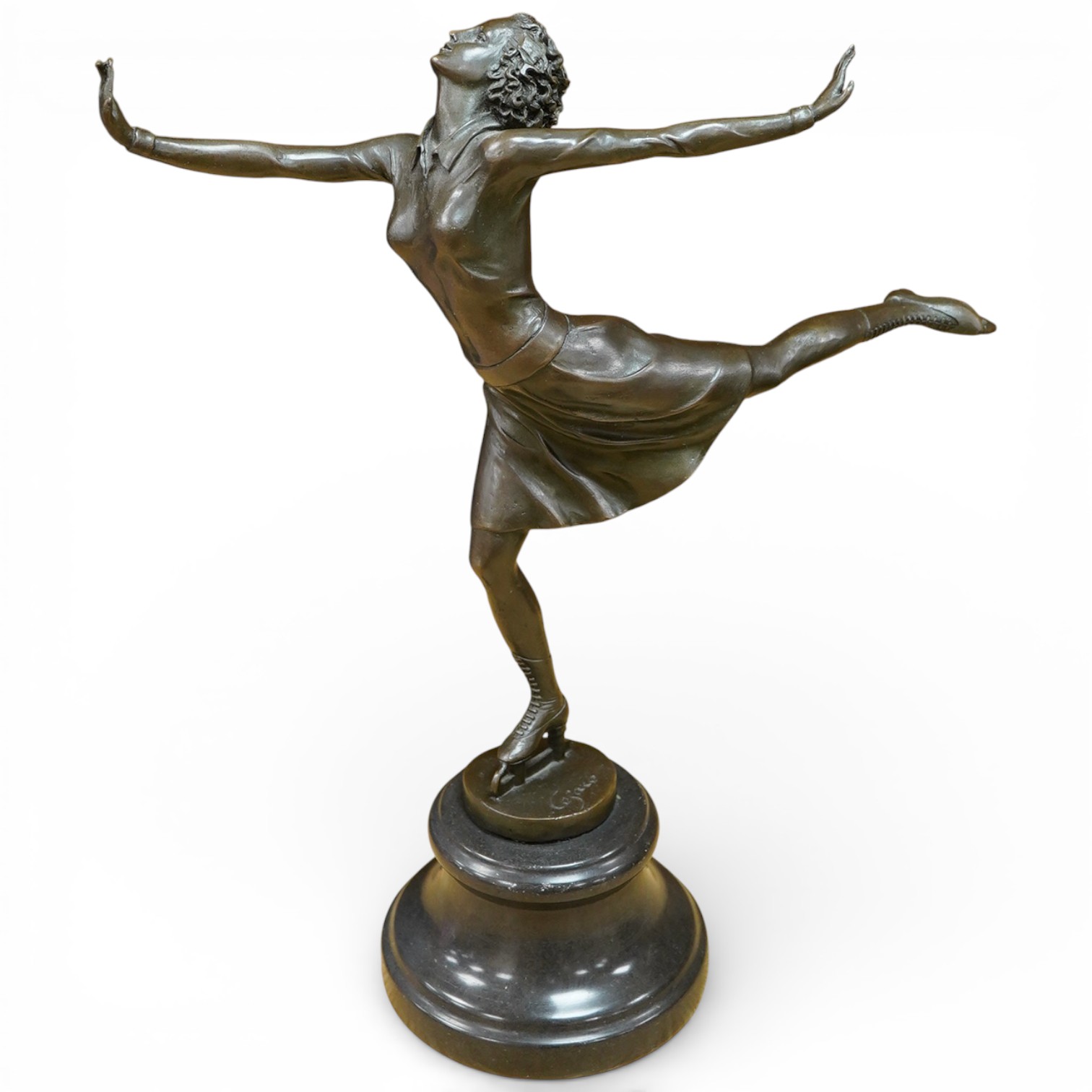 After Antonio Cesaro, a bronze figurine of an ice skater, 36cm