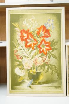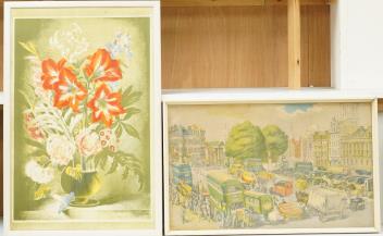 Lot 1747 , After Gerald Cooper (1898-1975), 'Striped Lily', sp12, printed in England at The Baynard Press, lithographic school print, together with after Phyllis Ginger, ‘Town Centre’, lithographic school print, largest 42 x 68cm