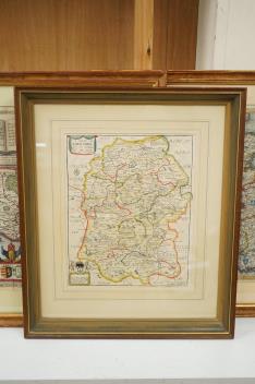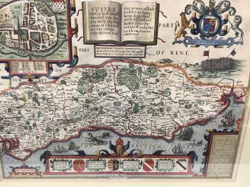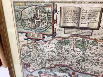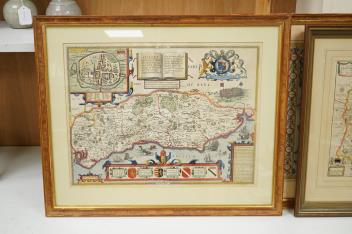 Lot 1704 , After John Speed (1552-1629), a hand coloured engraved map of Britain, after John Norden, a hand coloured engraved map of Sussex, together with a map of Wiltshire, largest 39 x 51cm (3)