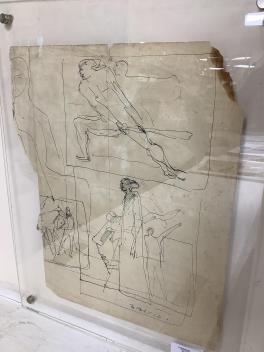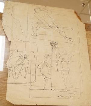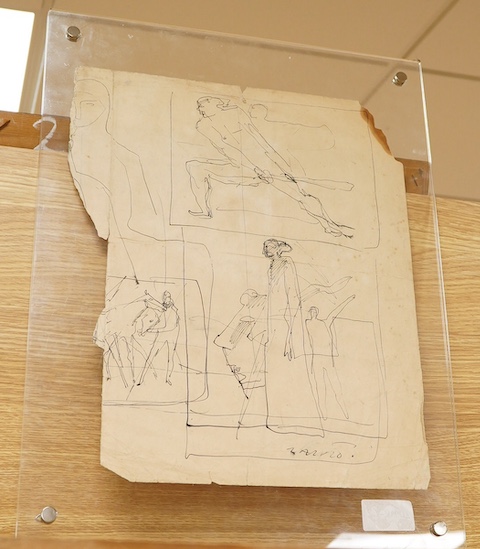 Lot 737 , After Marino Marini (1901-1980), figural study, signed, ink sketch on paper, abstract composition verso, 37 x 28cm
