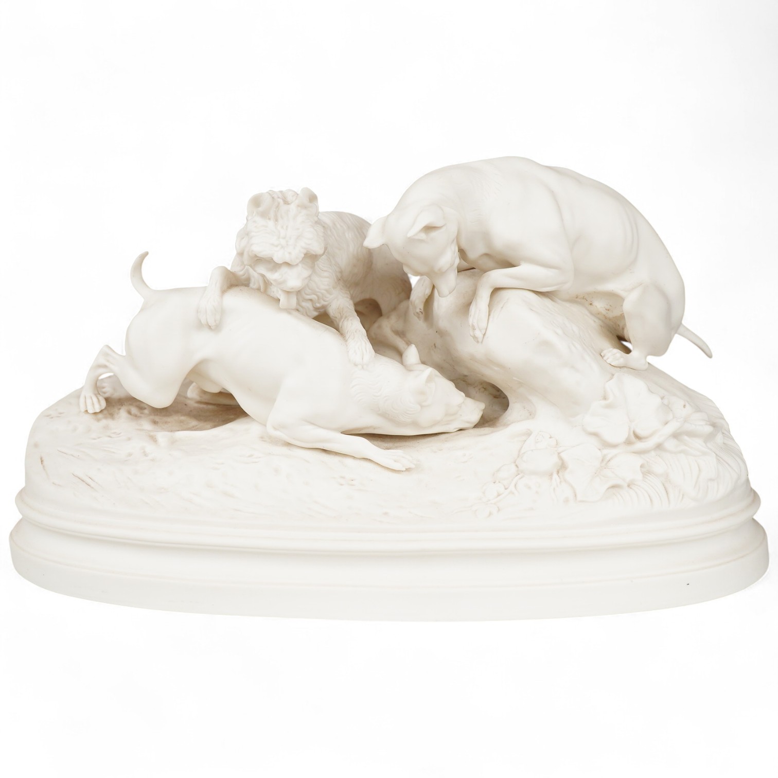 Lot 1429 , After Pierre-Jules Mene (1810-1879), a parian group, 'Le Chasse au Lapin', 31cm