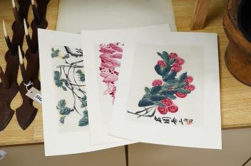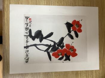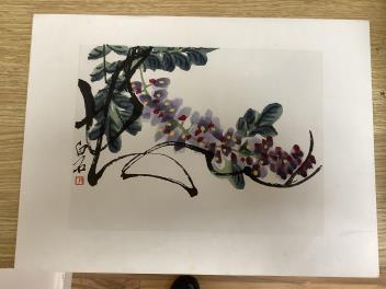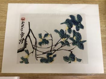 Lot 2745 , After Qi Baishi (Chinese, 1864-1957), Flowers and foliage, each signed with character marks and red seal mark, set of six woodblock prints, unframed, 32 x 43cm