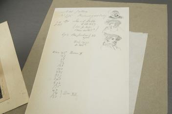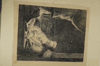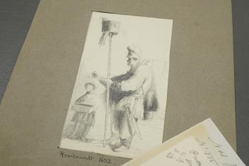 Together with a pencil sketch after Rembrandt 'The Rat Catcher' and a small quantity of related ephemera