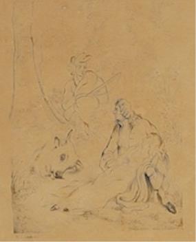 Lot 734 , After Sir Edwin Landseer RA (1802-1873), Figural study with figures seated beneath a tree, print on embossed paper, 28 x 20cm